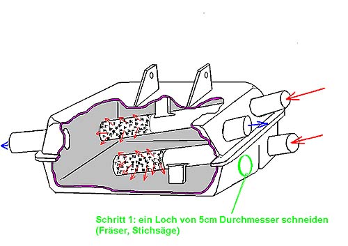 Wir kappen mit einer Säge die beiden Perforierten Rohre, die in den Sammler ragen (Das sollen Kats sein!), sowie deren