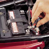 Kabel richtig anschließen! Das Vertauschen des Plus- und Minus-Pols würde nicht nur die neue Batterie schädigen, auch Generator und Bordelektrik könnten zerstört werden!