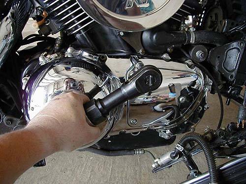 Der gesamte Job kann mit dem Motorrad auf dem Seitenständer durchgeführt werden. Wenn das Motorrad auf das Seitenständer steht, ist es