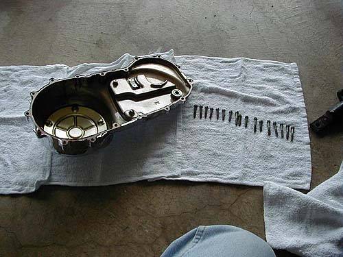 Mit einer 8mm Nuß entfernen Sie die 17 Schraubbolzen, die den Kupplungsdeckel halten.