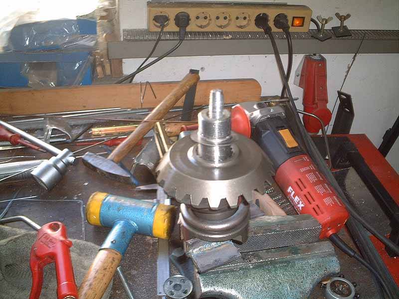 Zum Ausbau des Lagers wird ein spezielles Werkzeug benötigt (hab ich mir selbst zusammengebraten!). Heinz meinte, ich solle eine Zeichnung